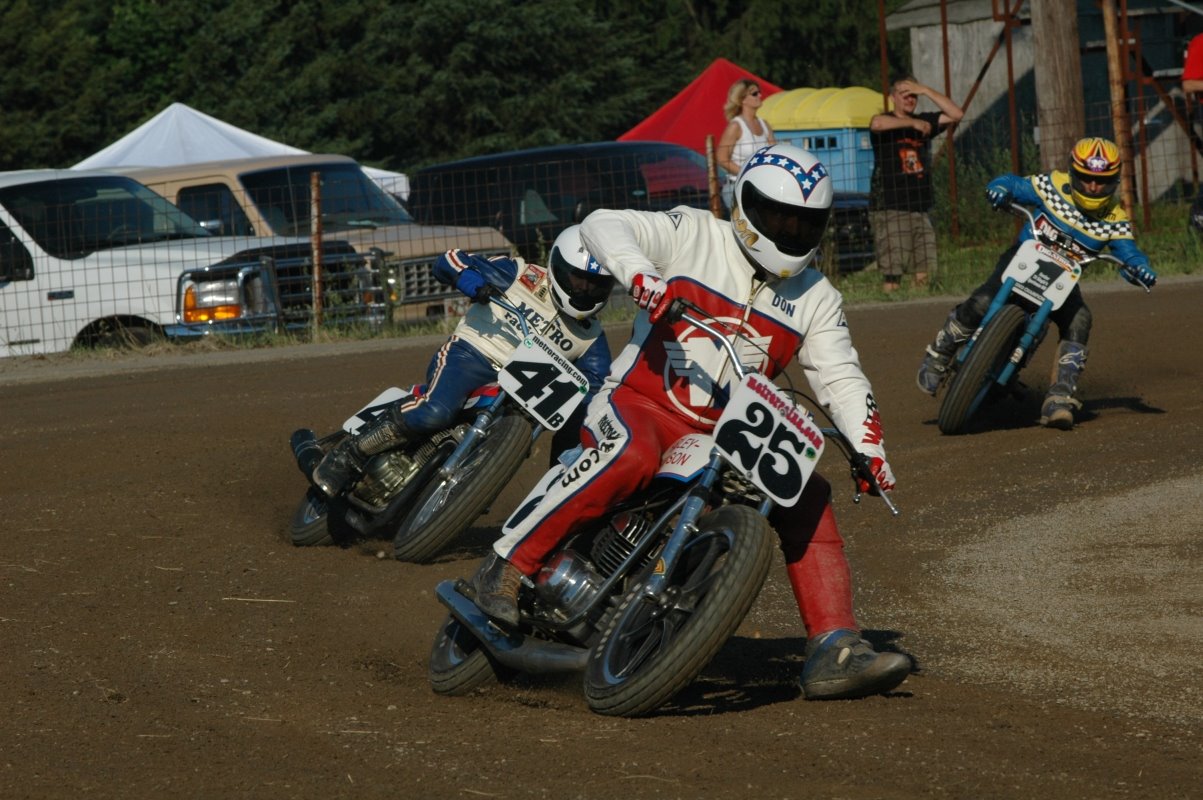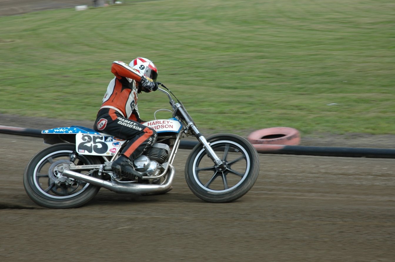 Not only did the motors appear stock in Moto Crossers. A lot of flat track racers used them in the late 70’s and early 80’s. Here’s a couple of my Harley MX 250 in a Boss frame. On is of Jay Springsteen on it and the other is me being chased by 2 very big 4 strokes.