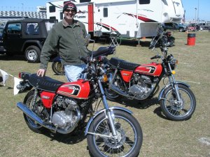 CB360’s and tall Serbians! My good friend Alex “The maaaaaad Serbian” and his nice matched set of CB360’s in the Daytona infield! Rate this:Share: Click to share on Facebook (Opens in new window) Facebook Click to share on X (Opens in new window) X Click to email a link to a friend (Opens in new window) Email Click to share on Reddit (Opens in new window) Reddit Click to share on Pinterest (Opens in new window) Pinterest More Click to print (Opens in new window) Print Like Loading... Related