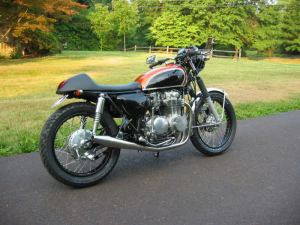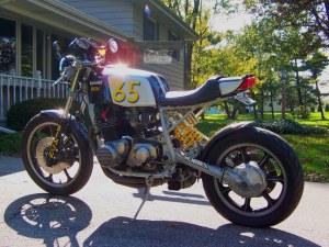 Reader John Cripe sends in some pics of his KZ1000 shaft drive streetfighter. I’m labeling it a streetfighter but it really more than that. I love bikes like this. It’s the kind of build that you might think about but only one in a billion might try. And what a great result. That rear end is inspired.