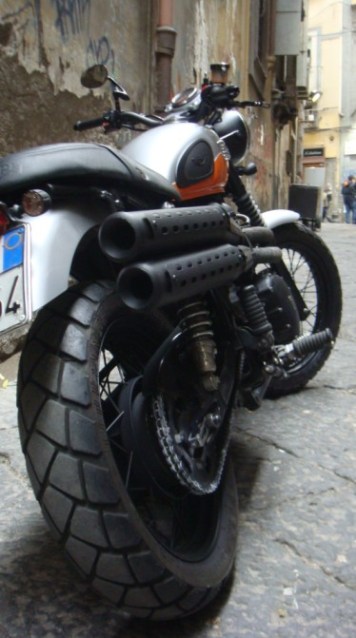 Mario Spatarella sends in some pics and video of his tough looking scrambler. I love the pipe treatment and blacked out wheels.