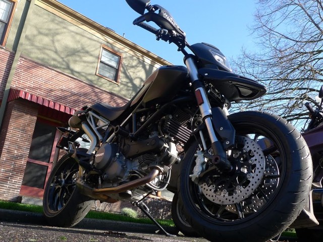 The first is from Richard E Jones who is also the owner of the excellent Motokafe Blog. Very nice site. Be sure and check him out. He sends in a stylish pic of the “business end” of his sweet 2010 Ducati Hypermotard.