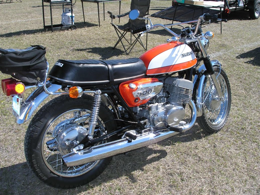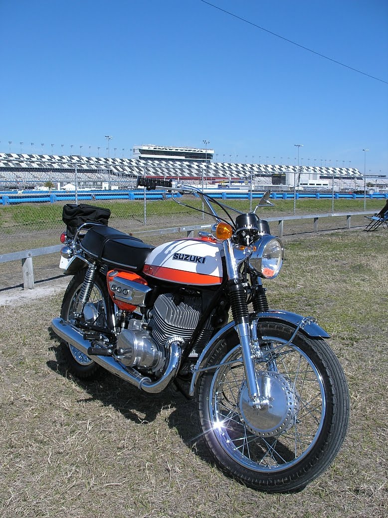 Suzuki T500. Just got home from the Daytona Vintage races and this was literally the first pic I took.