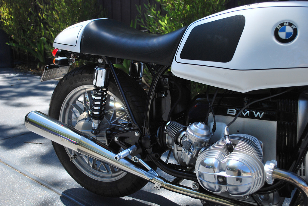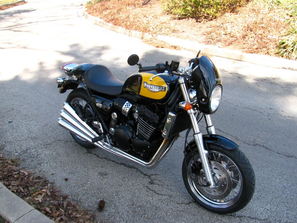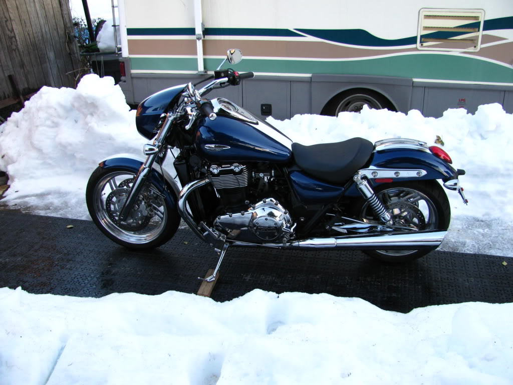 Here’s a few pics after her bath. Still have some tweaking to do. So far new 50/50 tires, new handlebars, new heavier rear spring and lot more ghoodies on the way including 520 chain/sprocket, front springs, brakes, wheel bearings etc etc.. along with all the necessary maintenance stuff that you have to do to a bike when you dont’t know anything about it’s “real” history. Anywhay here’s how she sits at the moment but I think a switch to all white (with tasteful decals) my be in the offing. Too soon to tell.