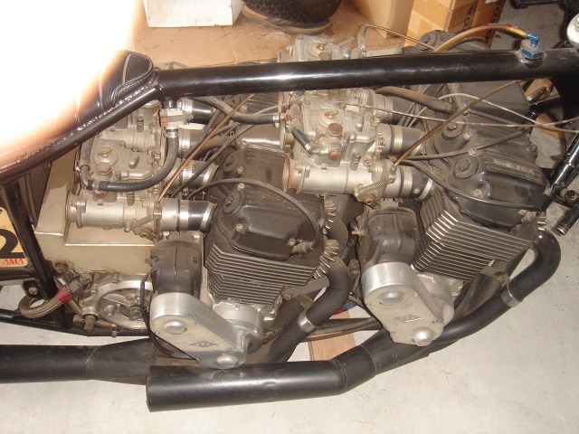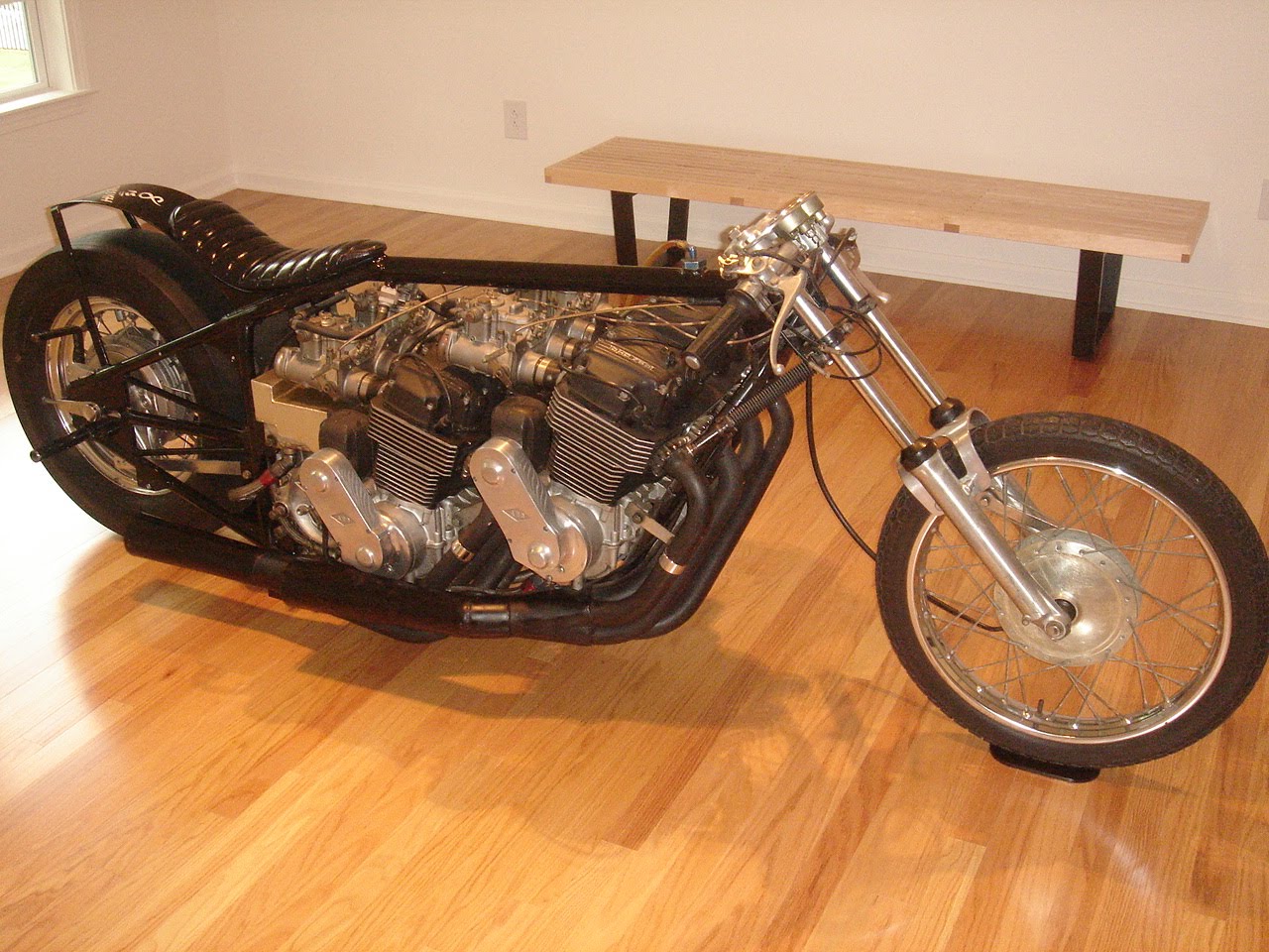 Continuing on the theme of multi-engine bikes… Here’s a CB750 twin engine drag bike. Rate this:Share: Click to share on Facebook (Opens in new window) Facebook Click to share on X (Opens in new window) X Click to email a link to a friend (Opens in new window) Email Click to share on Reddit (Opens in new window) Reddit Click to share on Pinterest (Opens in new window) Pinterest More Click to print (Opens in new window) Print Like Loading... Related