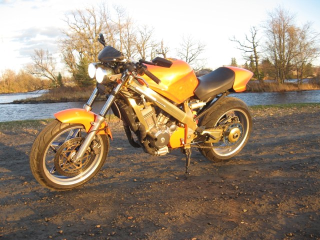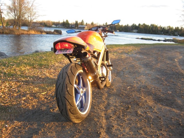 Rick Peters and I have been having a back and forth on this bike for a while now. I’ve been holding off posting it till he was closer to done and I think he’s close enough now that I can put some shots up. Rick I’d still like to see some before pics if you get a chance so i can add them to the post. I like it a lot! The paint job is the bomb and those rims must have takes some serious mods to fit. I can think of a few mountain roads whee this bike would be the bomb!