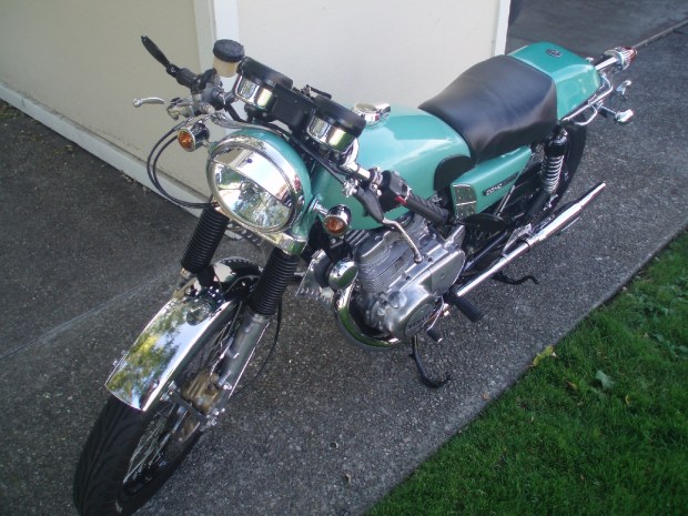 This is a 1974 Yamaha TX500 twin. It never really sold well, but its