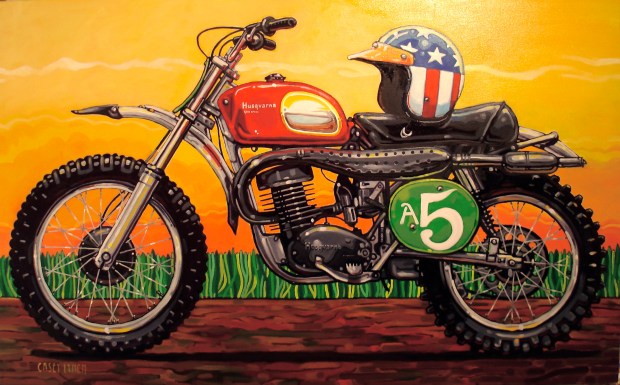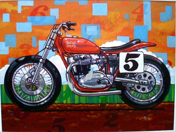 The Husky is sold, but I have the Triumph for sale at a local place in town for $375. It’s big (30″ x 40″), so I’m not sure what it would cost to ship it. And I’m always willing to do commissions! I’ve done a few – on my website CASEYLYNCH.NET you can pick ‘cars, motorcycles, and planes’ in the Categories heading to check them out.
