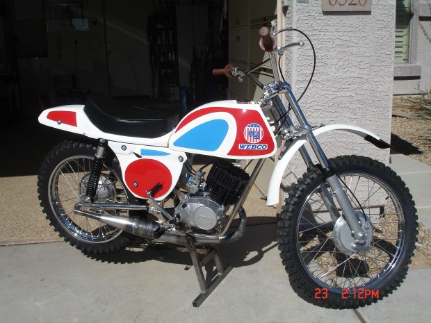 I have great photos of a Webco Hodaka 100 Replica that he built. The original was a one-off project bike by Webco and featured on the cover of Modern Cycle in February 1971. I am an illustrator/designer and made the art to replicate the one-off stickers on the tank.