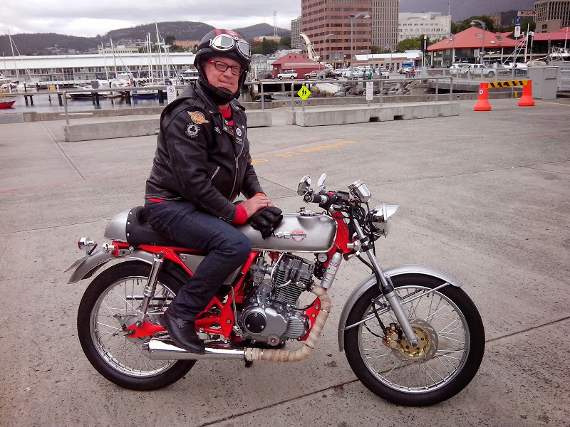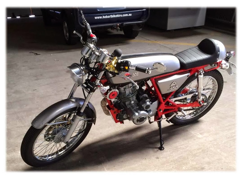 Thought you might like to share a couple of pics of my latest project, the ‘Amazing Ace’ 125.  Have owned it just over 6 months and have performed many mods in that time whilst sticking to a very realistic budget of around $600 all up.  The bike was bought ‘in a box’ from the distributor in Western Australia for $1820 landed in Hobart, Tasmania.  Fours hours or so to put it together with the help of a friend.  Here’s a list of what’s been done: