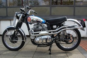 Here are a few more. Note, in addition to those bikes, which participated in the Reliability Run, the pretty blue BSA single and the old Indian were part of the BSA Club’s vintage trilas event, and the cool, little ’52 Triumph Terrier is in flattracker guise.