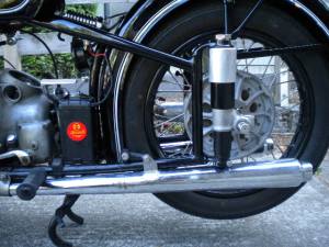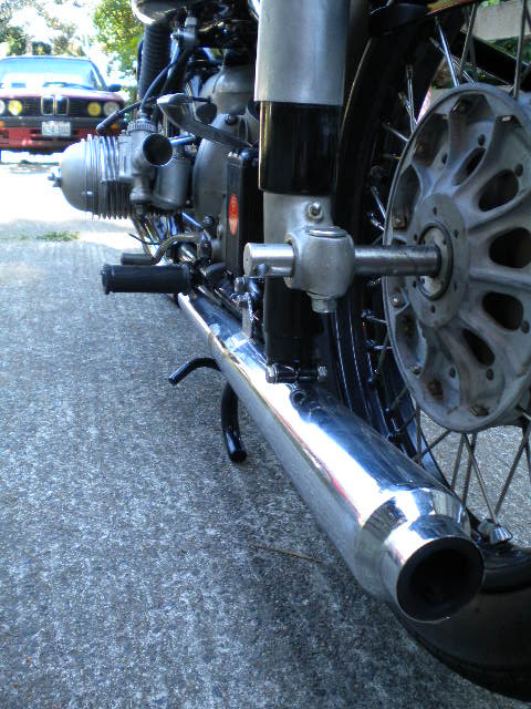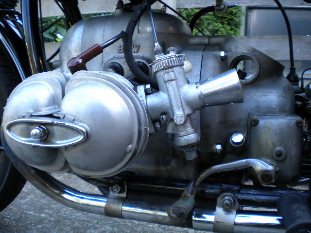 I have added the Hoske pipes, not knowing if they were ever intended for the /3 plunger frame I had to make us some brackets. The SS1 Dellortos were also and ebay purchase, one of the seemingly impossible finds that may not see another pair for some time. The seats are new reproductions, the valve covers are from either a single or R51/2. The engine is interesting in that instead of the standard 68mm bore, there are 72mm pistons on a standard stroke crank.