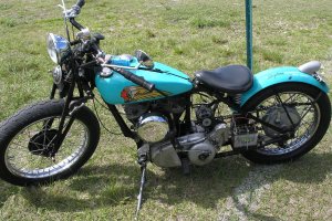 Here are a few more. Note, in addition to those bikes, which participated in the Reliability Run, the pretty blue BSA single and the old Indian were part of the BSA Club’s vintage trilas event, and the cool, little ’52 Triumph Terrier is in flattracker guise.