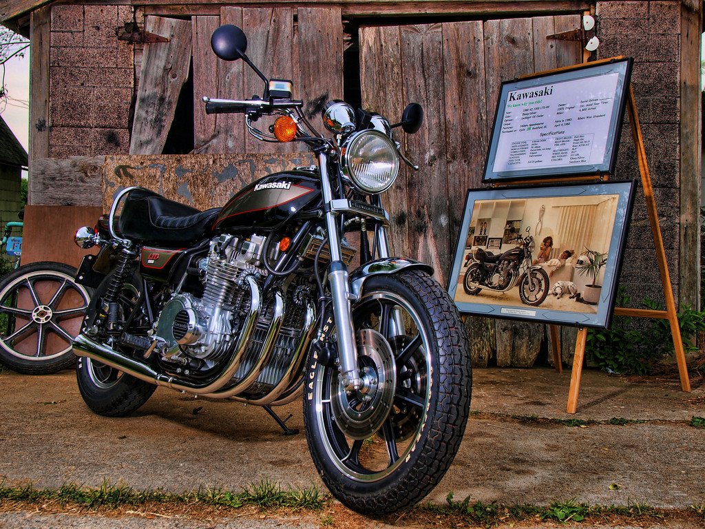 Jay Leno is auctioning off his V-Max to promote art education. With promo pics like this shouldn’t he be fighting breast cancer? A VERY worth cause! Just a thought 🙂 Story Here!