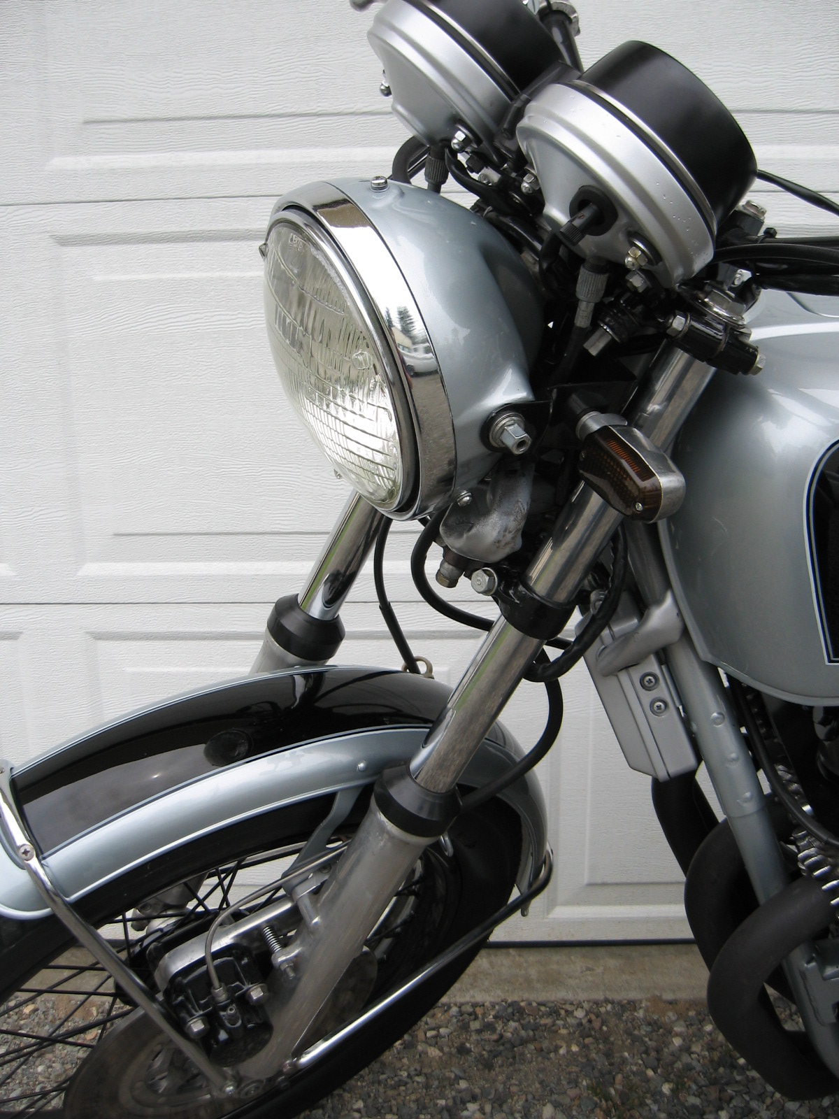 We had a starting point. We tried to accomplish this by using as many parts as possible that we already had around the shop, simply refinishing, replating, repainting and restoring. Well after about 6 months this is what we came up with. Its a real conglomeration of parts from many different bikes that we made work.
