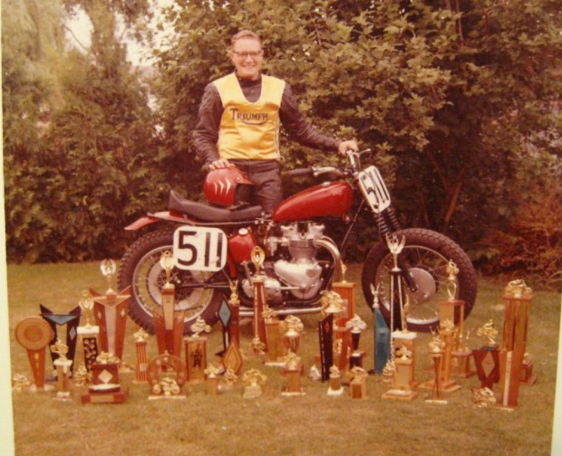 Hi, I love your site. I have to get my daily fix along with my coffee. It was a major influence in the resurrection of my late fathers Triumph thumper. My father used this bike in the 70’s to check his cotton fields in South Texas, but when I was born it went into the tractor shed until a few months ago when I turned 21 and decided to bring the old Triumph back to life that I used to sit on as a kid. It may not be a purists favorite bike, but its mine! Almost everything is original with a few exceptions… Norton handlebars, new electrics, headlight and tail light, Harley battery box, roadside reflector side panels. The tank is the original “hunting yellow” but has faded over the last 38 years, but to my surprise, Caterpillar Tractor paint matched the old faded tank perfectly and I feel that It’s true to the bike roots. Just thought I’d share my favorite motorcycle because your site influenced the way it turned out. Cheers!