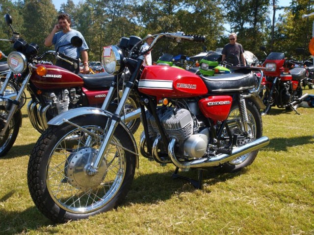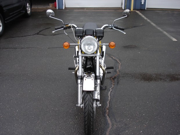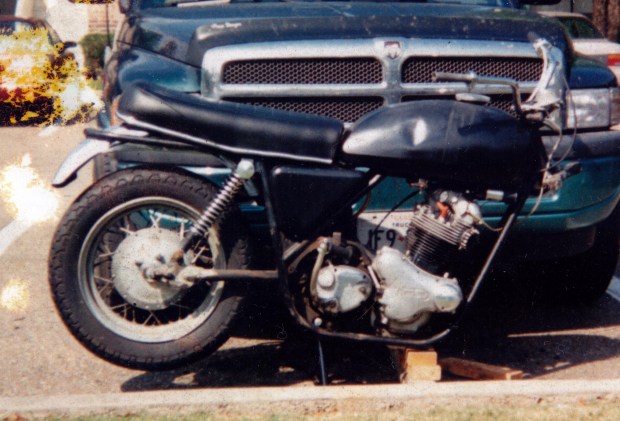 Hi, thought I’d send in a couple of pics of my bike I took today, and one I took 15 years ago. When I got it in ’96 it was a wrecked chopper with a seized engine. The guy I bought it from had started collecting new parts to fix it up, so I already had a head start. The forks were bent in far enough that despite being 4 inches longer, the wheelbase was shorter than stock! Once I got it home and freed the engine (seized rings), I cleaned up the single Mikuni carb, and got it started before disassembling it down to the frame. I borrowed a camera from a co-worker after pulling the bent front end and the Dunstall rear sets, which I still have. Why a chopper had rear sets is beyond me, but considering the state it was in, not much would have surprised me.