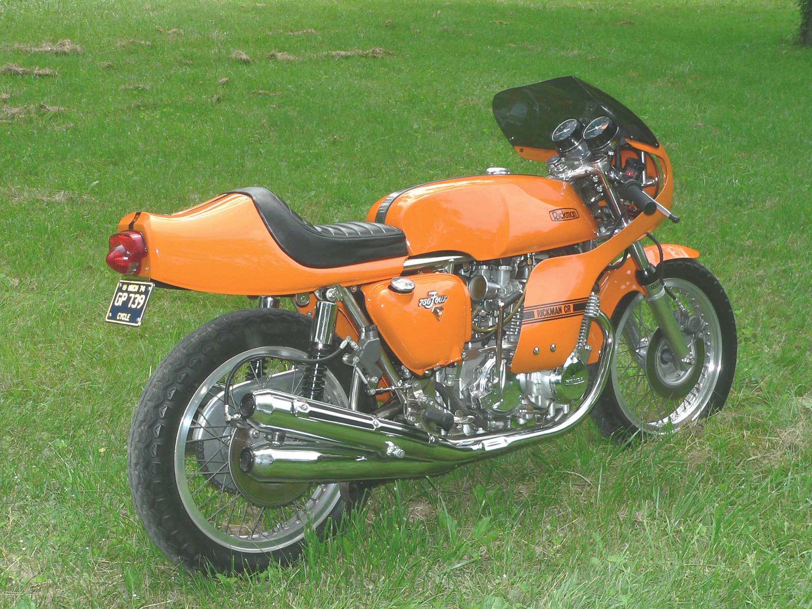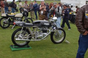 The Black Honda, stock 1973 rolling chassis with Dunstall hand and foot controls and Read Titan bodywork came to me originally thought to be all Dunstall. I started that bike, then the orange Rickman, which I had been pestering the previous owner for almost 20 years, came my way, crashed, but not bent. That one took a year to complete. Attachment above shows photo of me with the Rickman Brothers at last years AMA Concourse event. Got back to the Read Titan bike, finished it, then got a call from Craig Vetter, who raced the green Rickman back in the day. He gave the AMA museum that bike back in the 90’s when they inducted him into the Hall of Fame. He wanted the bike restored for the upcoming “Cafe Specials” display at Mid O in July, as well as a show at the ACE Cafe in London in September. I spent all Winter getting it ready for the RIH event, which it never made it to as you know. Craig Vetter has been tracking the restoration on his website if your interested. www.craigvetter.com Go to “motorcycle design” then find the link to “Vetter Rickman racing”, follow that to the bottom of the page and see “restoration”.