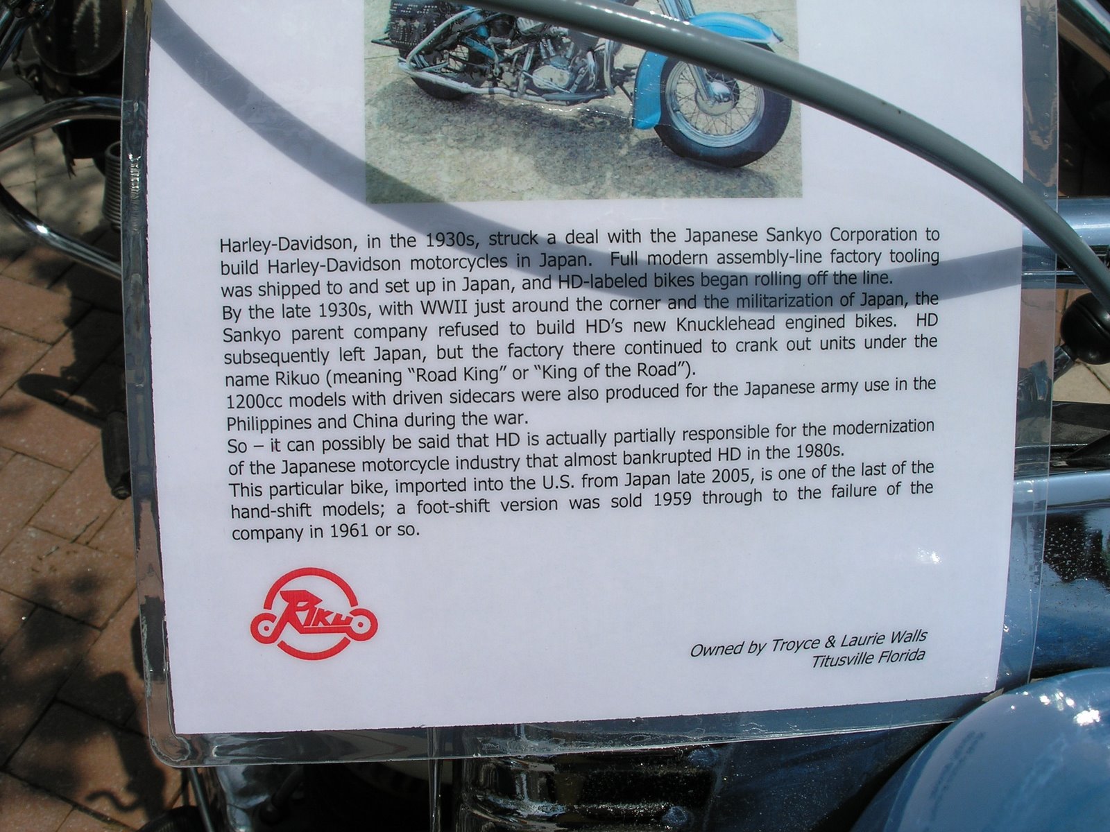 Sankyo Rikuo. A very rare (at least in the U.S.) Japanese Harley Davidson "Road King". Share: Click to share on Facebook (Opens in new window) Facebook Click to share on X (Opens in new window) X Click to email a link to a friend (Opens in new window) Email Click to share on Reddit (Opens in new window) Reddit Click to share on Pinterest (Opens in new window) Pinterest More Click to print (Opens in new window) Print Like Loading...
