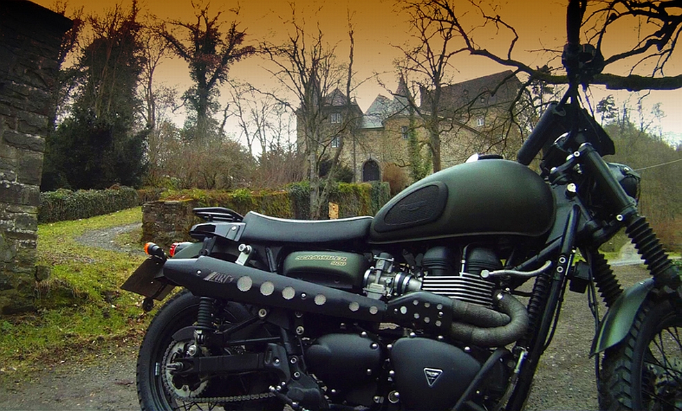 Hi, I customized my Triumph Scrambler with lot’s of help of my neighbor and a lot of inspiration of your site. On my tour today I passed my new Garage and took some footage with my GoPro. The pic are stills from that footage and a little pimped in Photoshop. Hope you like it anyway.