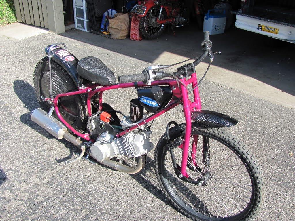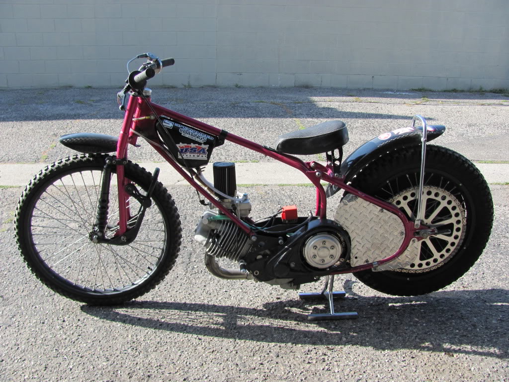 Speedway! I admit that I don’t know much at all about these bikes or this class of racing. I think it a wicked little number though. It’s like featherweight Industrial Art. Go to the end and turn left! And it’s FOR SALE! Share: Click to share on Facebook (Opens in new window) Facebook Click to share on X (Opens in new window) X Click to email a link to a friend (Opens in new window) Email Click to share on Reddit (Opens in new window) Reddit Click to share on Pinterest (Opens in new window) Pinterest More Click to print (Opens in new window) Print Like Loading...