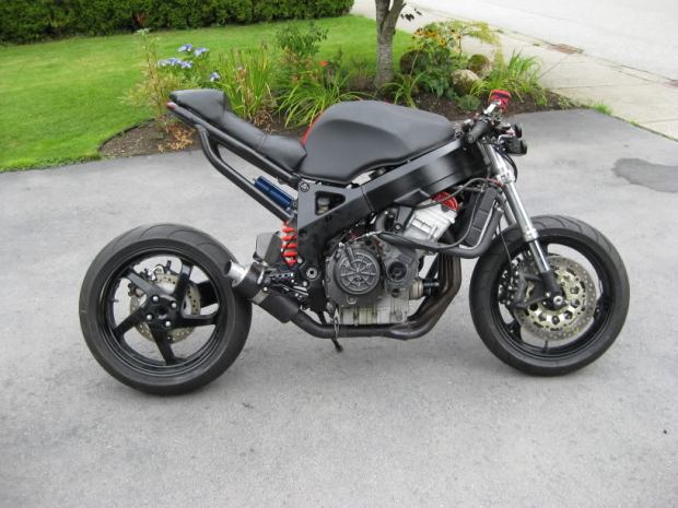 My name is Ben and I’m a bicycle courier in Vancouver BC. I also build bikes in a little DIY shop with a few friends of mine. This is my CBR900RR street fighter that I built while in a wheel chair from crashing a previous bike. It’s got a 1000rr front end and VFR single sided swingarm. The rest was cooked up my me.