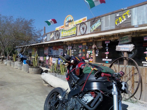 When it was done and I could walk again, I rode it from Vancouver to La Paz mexico following the pacific coast the entire time! The trip was phenomenal, an experience of a life time. After going through a few sets of tires and having the best time, the bike was stolen right before my eyes! Snatched into a van in downtown La Paz never to be seen again! All in all it was worth it but I sure miss her! The last two pics are of my beach side off road adventure and camping spot that was part of the Baja 1000 coarse. The other is a fantastic restaurant, great crab burrito.