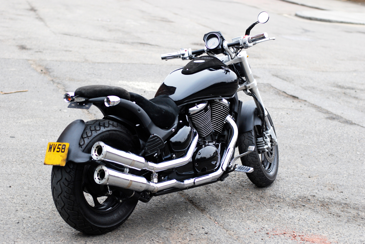 Stock engine with KN filter and fine carb’ tune, modified titanium Akrapovic exhaust line with Shark silencer (titanium wrap) Norton racer seat, great paintjob, all mixed with ideas, friends and fun.