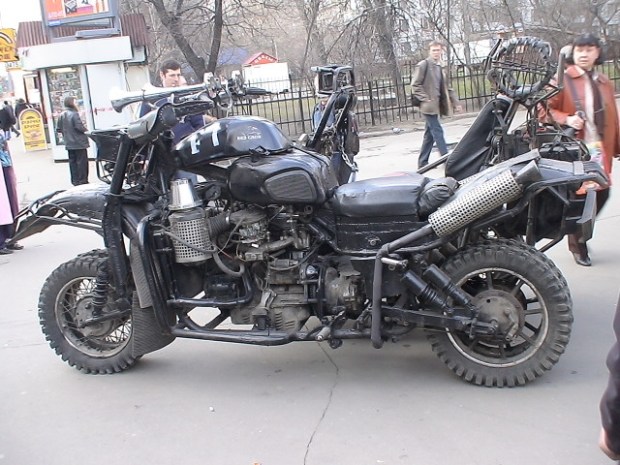 From he comments: This bike is made of parts of Dnepr motorcycles and engine from “Moskvich” car. The owner of this bike Anton “Pzirak” (Ghost) lives in Moscow. The motorcycle was built somewhere in 2004.