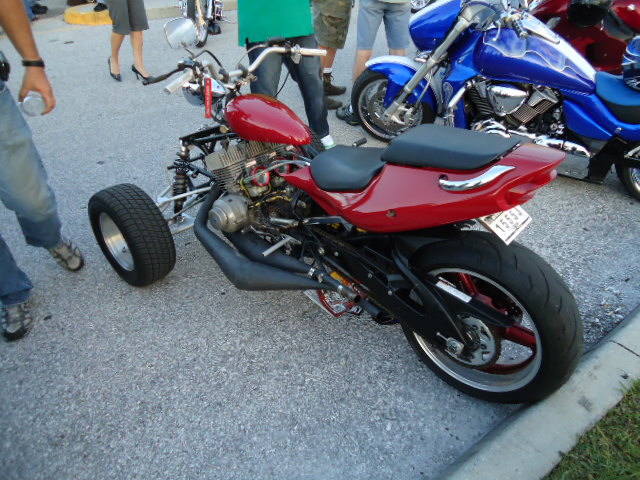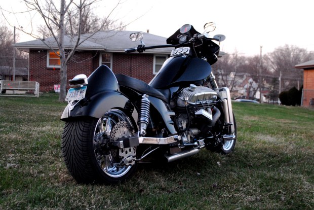 Michael Yamen writes in: Here are a couple of my hand built Bikes. First one has a 540CI big block Merlin Engine. 2nd one is my home made Triumph Rocket sidecar rig