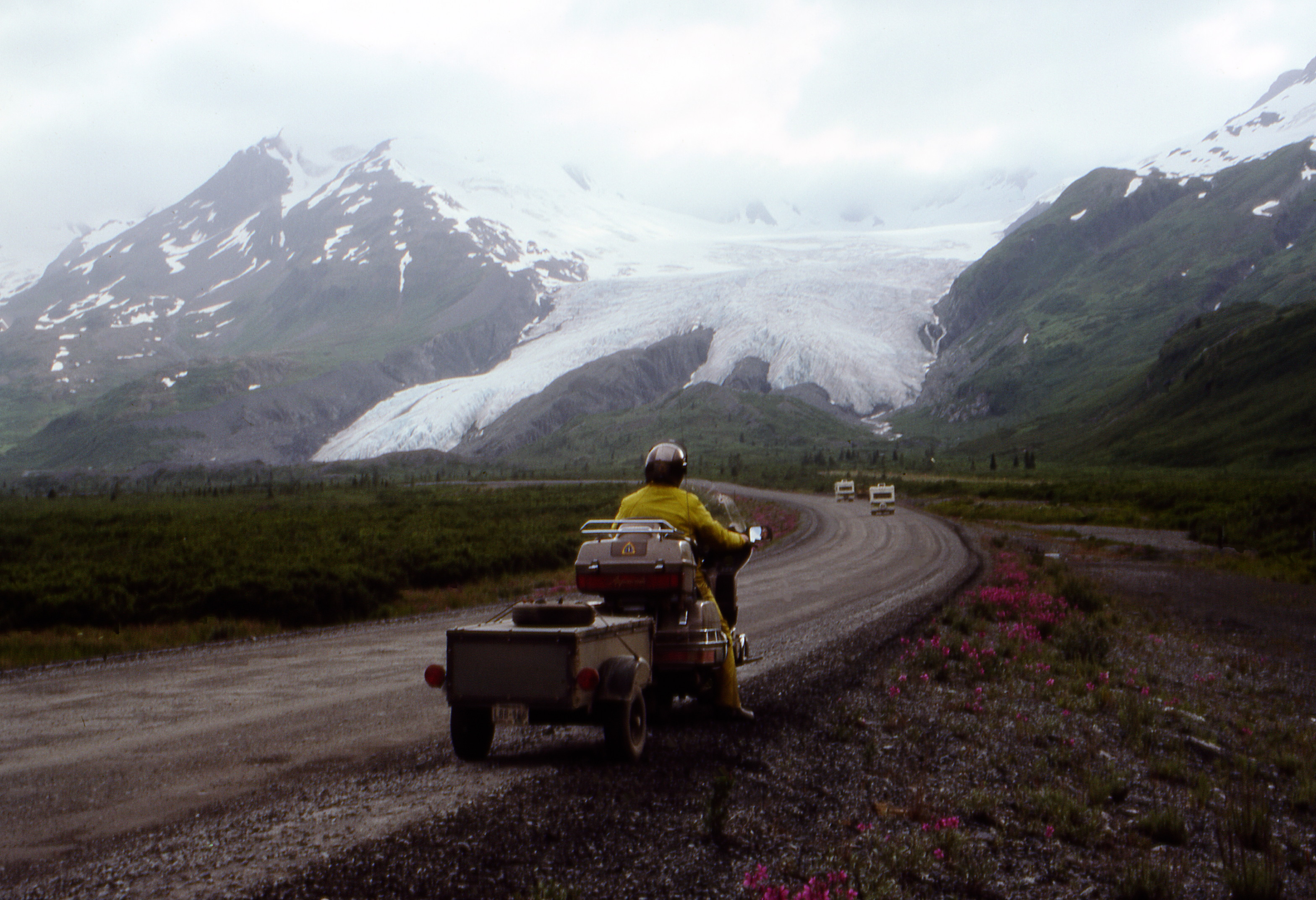 Attached is a picture of my dad (mom is taking the picture) on his Honda Aspencade along the side of the road approaching Worthington Glacier, Alaska in 1986. On this trip they and another couple motorcycle tent-camped from Minnesota to tour Alaska and then back via the Alaskan Highway both ways putting on this 9000 mile trip.