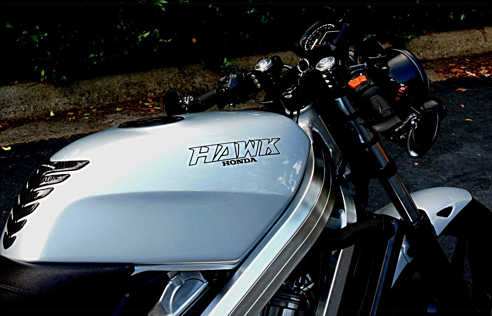 You posted an article for my 1988 Honda Hawk GT650 back in January 2012. Since then I have done quite a few new things to it. Some of the parts that have been added was a solo seat cover, new custom made from fender, custom sprocket cover plus many other custom parts. Almost all the custom parts were made by members of the Hawk community on HawkGTForum.com. There are many talented members on the hawk forum site. With some having cnc skills, to others having fiberglass and carbon fiber modification skills. Here is some of the newer photos. Thanks again for your site. Jas