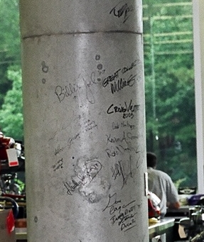 A closeup of tho column with the autographs. I can just make out Billy Joel and Craig Vetter.
