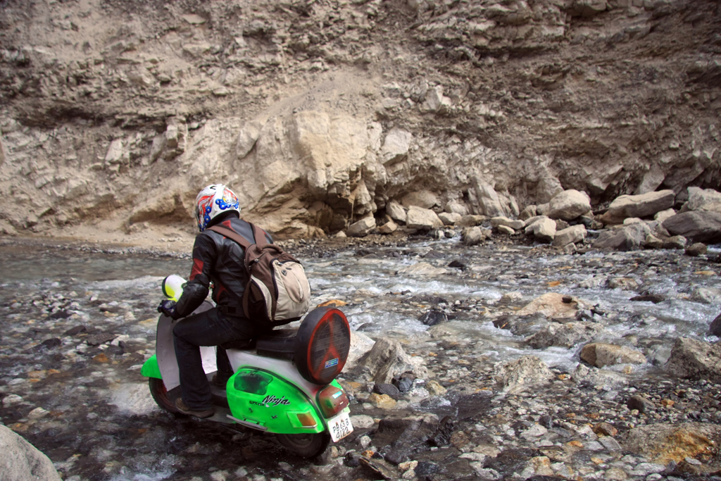 Me and my friends rode some scooters to the highest village on earth. It would be really great if you could feature these on your website. The name of the Village is Kaumic, it’s about 4300 meters (over 14,000 feet) high. We rode in May 2008. All these three are two stroke scooters. The make and model are, 1. Bajaj Chetak, 2. LML Vespa Select, 3. Kinetic Honda DX. The Kinetic is a non-geared scooter. They cost us a 100 dollars each. We mixed cooking oil in the petrol because we couldn’t find 2T (2 stroke) oil high up in the mountains.